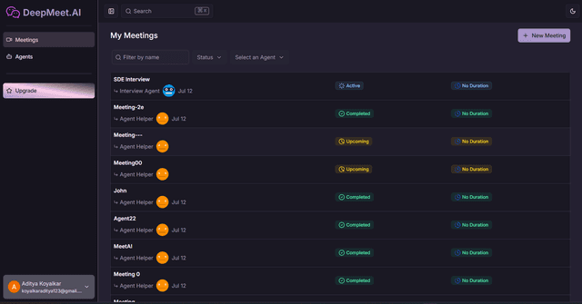 DeepMeet.AI is a platform that empowers users to initiate real-time video calls with custom AI agents tailored to their specific needs . Beyond the live interaction, DeepMeet.AI offers a comprehensive post-call experience with features like video playback, transcript search, and an intelligent AI chat that retains full context of the meeting—making follow-ups seamless and insight-driven.